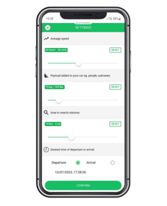 nextcharge ist eine weitere App, die es ermöglicht, eine Route unter Berücksichtigung von Ladepunkten auf dem Weg zu erstellen. Hier kannst du das auch direkt in der App tun. Gib einfach dein Automodell, die Abfahrts- und Ankunftsorte, die Durchschnittsgeschwindigkeit, die Anzahl der Passagiere und andere Details ein. Du erhältst dann eine personalisierte Reiseroute, die alle deine Ladepräferenzen berücksichtigt und den voraussichtlichen Batteriestand an verschiedenen Punkten der Reise genau berechnet.