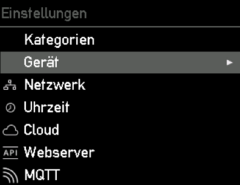 Unter “Einstellungen” kannst du Einstellungen wie zum Beispiel die Uhrzeiteinstellungen, Cloud-Einstellungen, Netzwerkeinstellungen und weitere Geräte-spezifische Einstellungen vornehmen.