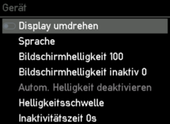 In der Einstellung “Gerät” kannst du beispielsweise das Display des Controllers drehen, falls du diesen um 180 Grad gedreht montiert hast, die Sprache oder z. B. auch die Helligkeit des Displays anpassen.