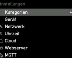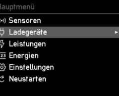 Willst du einen der Menüpunkte auswählen, betätige wieder die Taste mit dem Pfeil nach rechts (>). Möchtest du wieder zurück navigieren, betätige die Taste mit dem Pfeil nach links (<).