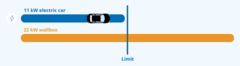 Let's assume your electric car has a maximum charging capacity of 11 kW AC and you charge it at a 22 kW wallbox. In this case, your car will still only be able to charge at 11 kW, as the on-board charger of your electric car does not allow more. The weakest link in the chain is therefore the car.