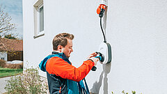 The intelligent wallbox can be used both stationary in the wall bracket and mobile. No electrician is required for the installation of the charging station. Charging power from 1.4 kW to 11 kW. 1-phase or 3-phase charging.