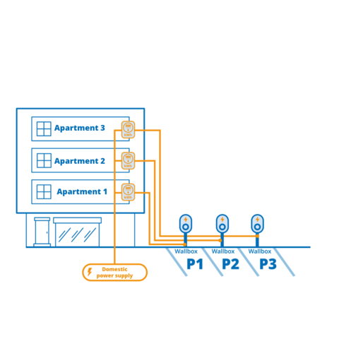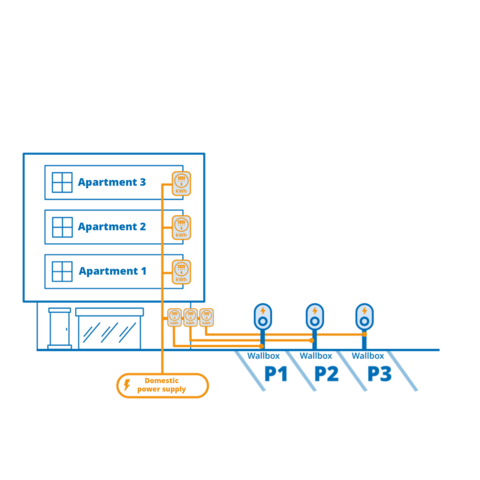 Single-user wallboxes connected to a flat meter: