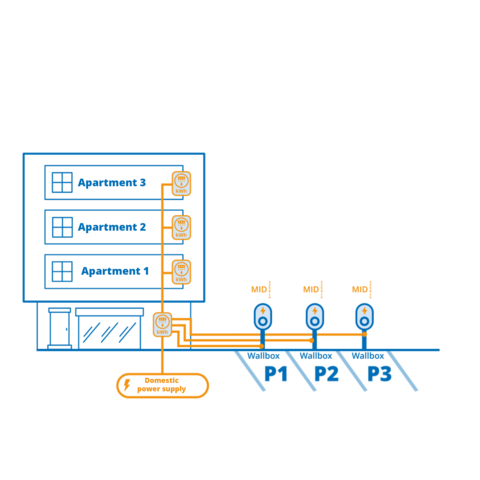 Wallboxes with MID-compliant meters connected to the general power supply: