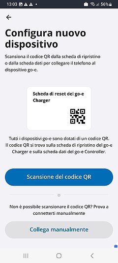 A proposito: Se hai completato l'intero processo di configurazione, compresa la connessione a Internet, e vuoi aggiungere il tuo go-e Charger all'app di un altro smartphone, è semplicissimo.
