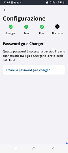 Per stabilire una connessione tra il go-e Charger e la rete locale o il cloud, l'ultimo passo consiste nella creazione di una password per il go-e Charger, che puoi scegliere liberamente.