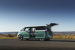 Snabbladdning sker med upp till 200 kW DC, vilket gör att 10–80 procent kan fyllas på runt 30 minuter under optimala förhållanden. Hemma eller på arbetsplatsen kan bilen ladda med upp till 11 kW AC via Typ 2-kontakt. Kombinationen av det generösa utrymmet, de skjutbara sidodörrarna och Volkswagens senaste mjukvaruplattform gör ID. Buzz 7-sitsig till ett unikt och spännande alternativ för familjer och större sällskap som vill resa helt elektriskt.