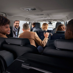 Volkswagen ID. Buzz 7-sitsig är en helelektrisk långhjulbas-MPV som kombinerar retroinspirerad design med modern teknik. Tack vare den förlängda hjulbasen på 3,24 meter rymmer den tre sätesrader med plats för upp till sju personer, och tredje raden kan enkelt fällas eller tas ut för att ge upp till 2 469 liter lastutrymme.