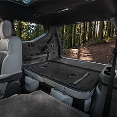 Möjlighet till många olika konfigurationer med förskjutningbar ö i mitten samt snurrbara kaptenstolar i andra raden vid 6-säteskonfiguration.
